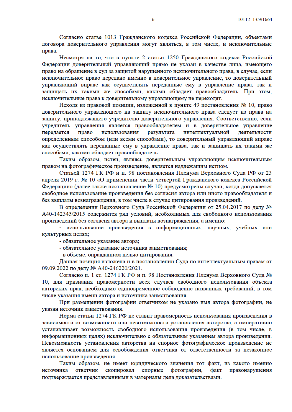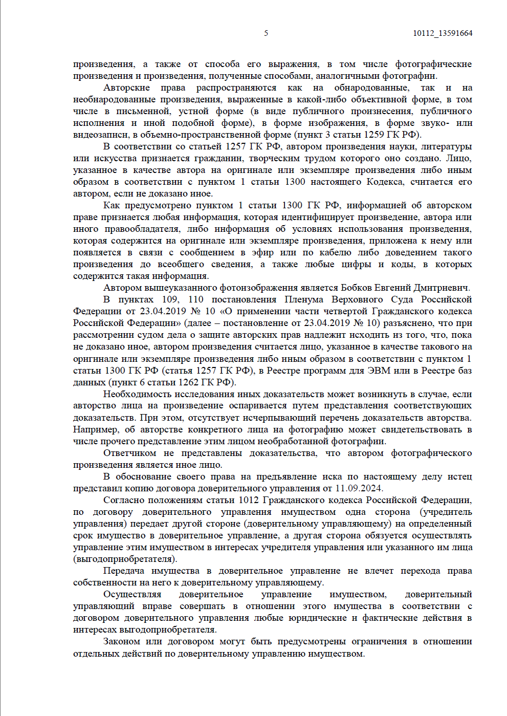 • отсутствие законных оснований. Мы доказали, что Ответчик использовал контент без заключения лицензионного договора. Более того, он не указал имя автора (Бобкова Е.Д.), что исключало возможность применения норм о свободном использовании (ст. 1274 ГК РФ);